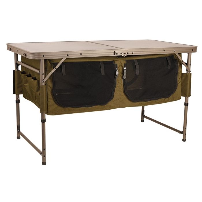Vi har fundet Fox Session Table With Storage fra Fox hos Fiskegrej.dk i kategorien Produkter Karpe Stør Hardware Bivvy Tilbehør. Session Table fra Fox med indbygget opbevaring, som består af to rum med mesh front. Det er oplagt til større bivyer eller fællestelte.